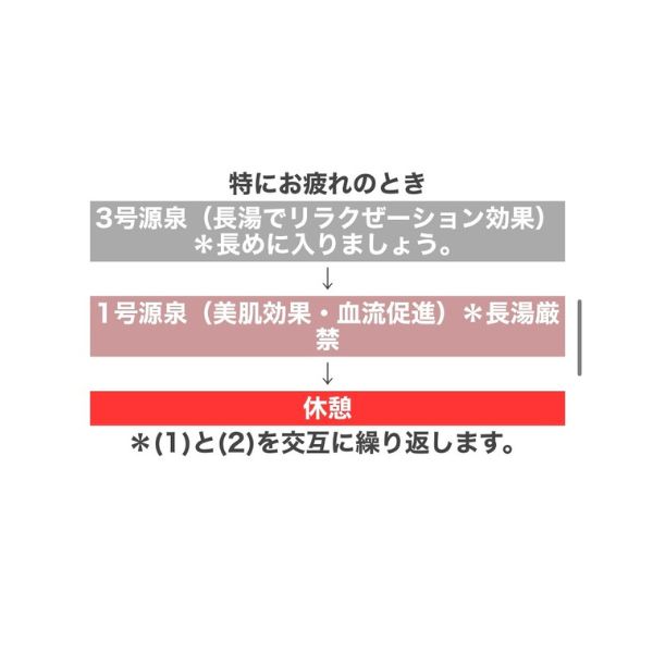 3号源泉は露天岩風呂・露天滝湯に使用しており、人間の体液に近い成分の温泉。この為、長湯しても疲れにくく3号源泉が最もリラクゼーション効果に優れている。